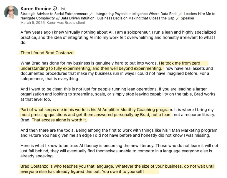Small group. Bring your questions, get specific answers. Hot seats, Q&A, and real-time problem solving. Every other Thursday at 10am Pacific Time.
